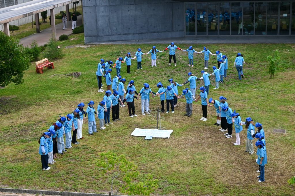 On April 15th, students from the 5th B and 6th B classes at the Montemor Secondary School came together and carried out an activity full of symbolism to mark the... Autism Awareness Day. Dressed in blue and holding hands, accompanied by their respective Class Directors, they formed a human ribbon, an international symbol associated with autism awareness.