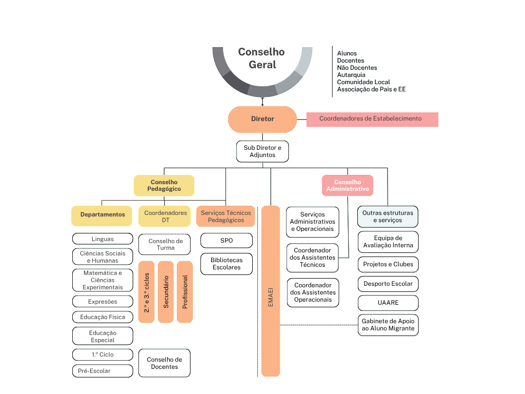 The organizational structure of the Montemor-o-Velho School Group was designed to ensure efficient, transparent, and student-centered management. Each body and team plays an essential role in the realization of the educational project, promoting academic success, inclusion, and the active participation of the educational community.