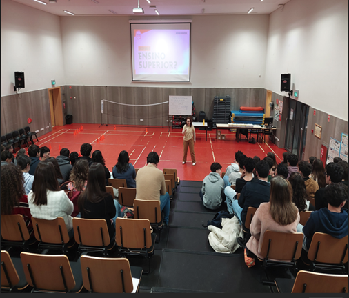 During the morning, the school space – Atrium of the Secondary School Building, welcomed a Higher Education Fair, where students were able to interact with various institutions of higher education e companies represented, gathering information (training programs and curricula taught). Simultaneously, 12th-grade students participated in a session about... access to higher education, in activities e workshops interactive, centered on personal, social and professional development. In the last theme “workshops” The sessions were extended this year, and for the first time, to the classes of 11th grade.