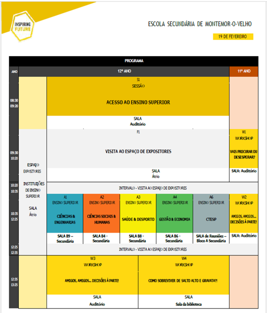 On February 19th, the Montemor-o-Velho School Group received a visit from Inspiring Future Project, promoted by Psychology and Guidance Service (SPO), in partnership/coordination with Inspiring the Future Association, providing students from all classes with secondary education A unique opportunity to explore their career prospects. This action is registered in the Group's Annual Activities Plan (PAA), within the scope of the activities of School and Career Guidance aimed at students of secondary education intending to create a bridge/connection between secondary education and the higher education.
