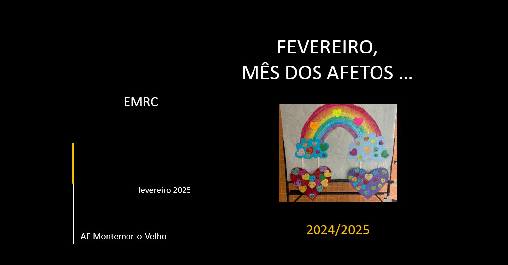 Fevereiro é, por excelência o mês dos Afetos. Mais uma vez, o nosso Agrupamento e em particular o Clube Mov+solidário, em articulação com as disciplinas de E.M.R.C., Ed. Visual, Francês, Ed. Especial, e com a participação do Pré-escolar e Centro Escolar de Montemor, não poderiam deixar passar esta ocasião de levar os alunos a voar num universo de boas emoções. Durante este mês foram elaborados, pelos alunos, vários trabalhos com mensagens que nos levaram a viajar no mundo das emoções, tendo sido pendurados e afixados no corredor da Escola Básica, criando, assim, o nosso Céu de Afetos, numa caminhada de emoções.